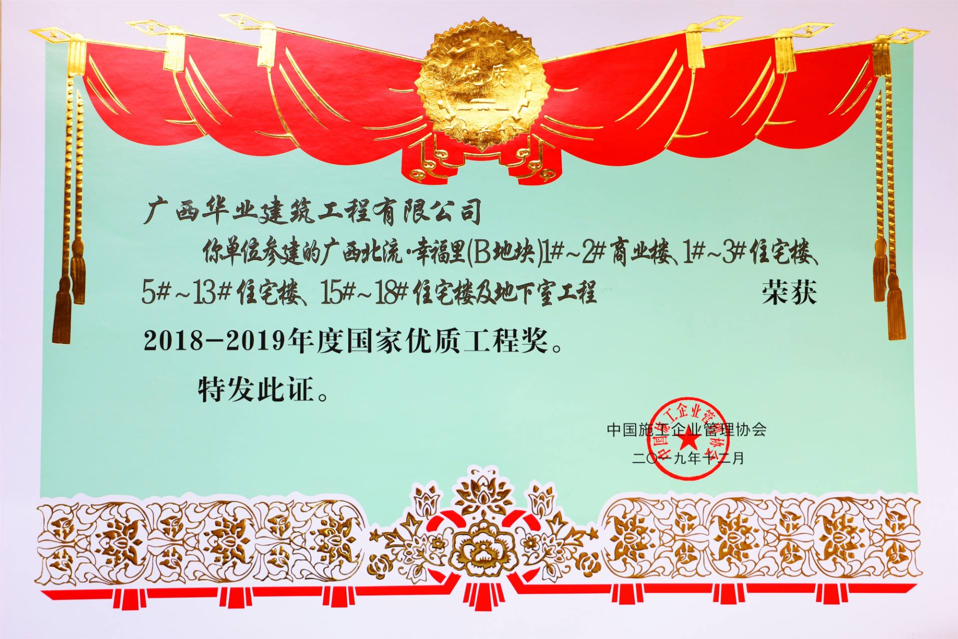 項目榮譽:國家優(yōu)質(zhì)工程獎 -